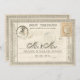 Ce post-faire-part de mariage unique imite une carte postale française vintage. Il présente le texte romantique "Pour Toujours, regardez ensemble dans la direction du mème" qui se traduit par "Pour toujours, regardant ensemble dans la même direction". Ajoutez vos propres noms, date du mariage et détails de la célébration à l'aide du modèle fourni.