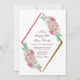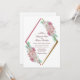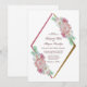 Un élégant faire-part de mariage moderne aux motifs floraux géométriques rose et or.