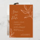 Invitez vos amis et proches à une célébration de mariage virtuel avec cette invitation élégante et chic de save the date avec une palette de couleurs terracotta terreuse et un design de feuilles esquissées. Personnalisez-la avec vos propres détails de mariage et photo au dos.