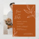 Invitez vos amis et vos proches à une célébration de mariage virtuelle avec cette élégante et chic invitation à enregistrer la date, avec une palette de couleurs terracotta et un design de feuilles esquissées. Personnalisez-la avec vos propres détails de mariage et votre photo au dos.
