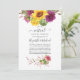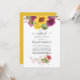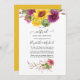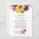 Invitation de mariage virtuel en ligne à distance dans des teintes de prune bordeaux et de couleurs solaires avec des tournesols et dahlias bohèmes rustiques.