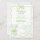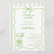 Une mariée dans un Tini Bit Funky & Whimsical Hand-Drawn Scribble Dirty Martini Invitation à la douche nuptiale - une façon amusante et branchée de célébrer la mariée à être. Cette invitation unique et personnalisable à la douche nuptiale comprend un cadre escarpé et ludique, un joli arc coquette, et un martini sale dessiné à la main avec trois oliviers dans le coin inférieur. La couleur verte d'olive chaude contraste magnifiquement avec l'arrière - plan blanc propre, tandis qu'un mélange d'élégants scripts manuscrits et de polices de blocs funky crée une atmosphère chic et animée. Parfait pour donner le ton d'une inoubliable douche nuptiale, cette invitation est idéale pour les épouses qui cherchent à célébrer avec famille et amis dans le style. Personnalisez facilement ce modèle modifiable avec les détails de votre événement. Disponible en téléchargement numérique instantané, il est rapide et facile à partager par e-mail, texte ou médias sociaux.