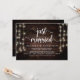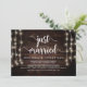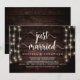Mariés à peine, Carte d'annonce / invitation de mariage en fuite, en bois de ferme rustique, conception de guirlandes lumineuses. C'est parfait pour votre réception de mariage et votre fête de célébration après le mariage. Ajoutez vos détails dans la police / lettrage correspondant.