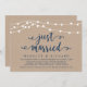 Belles lumières de chaîne de ferme rustique modernes, police de script bleu marine sur fond de papier Kraft, annonce de mariage en fuite, carte d'invitation (Mariés à peine). C'est parfait pour votre réception de mariage et votre fête de célébration post-mariage. Ajoutez vos détails dans la police / lettrage correspondant. #TeeshaDerrick