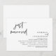 Carte d'invitation de Fuite de Noces sur le thème du script noir moderne (Mariés à peine). Elle est parfaite pour votre réception de Fuite de Noces / fête de célébration post-noces. Ajoutez vos détails dans la même police / lettrage noir.