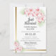 Une invitation élégante pour une réception de mariage après la cérémonie, avec des orchidées roses et une bordure asymétrique dorée stylée.