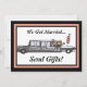 Les mariés s'éloignent en voiture. Annonce et invitation à la fête de réception.