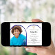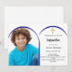 Ajoutez votre propre photo de taille verticale. Un cadre photo en arc bleu marine. Couleur arrière - plan blanche. Personnalisez et ajoutez un nom et des détails.