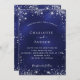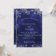 Un arrière - plan bleu marine, décoré avec de la poussière de parties scintillant en faux argent. La couleur bleue est inégale. Personnalisez et ajoutez vos noms et détails. Retour : Ajoutez l'url de votre site mariage pour les détails du mariage et RSVP.