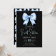 Invitation Marine Bleu Bow Coquette Script Sweet 16 Noir