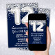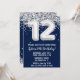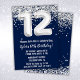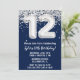 Marine bleu argent et blanc 12e anniversaire invitation 12 anniversaire de fête d'invitation pour un noir blanc argent avec écriture de script moderne et des ballons de papier amusant.