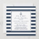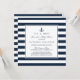Baby shower d'inspiration nautique avec rayures bleu marine et blanc et ancre. Personnalisez cette invitation de baby shower nautique en ajoutant vos coordonnées.