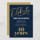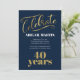 Elégante invitation à la fête du 40e anniversaire bleu marine, or et blanc.