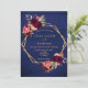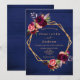 Invitation Marine bleu rustique mur bordeaux floraux mariage