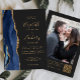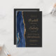 Le bord gauche de cette élégante faire-part de mariage moderne est orné d'une bordure en aquarelle bleu marine ornée d'une parties scintillant en faux or. Le texte personnalisable combine écriture manuscrite dorée, cuivre et polices italiques sur un arrière - plan gris fusain. Ajoutez votre photo préférée à l'envers, ainsi qu'un texte supplémentaire et un code QR pour envoyer les invités à votre site mariage.