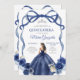Invitation Marine Blue Bow Princesse Silver Crown Quinceañera