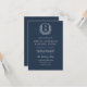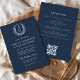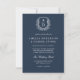 Invitation Marine Blue Floral Crest Monogramme Mariage QR Cod