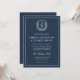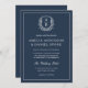 Invitation Marine Blue Floral Crest Monogramme Mariage QR Cod