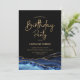 Invitation à la fête d'anniversaire d'agate bleu marine, noir et or. Elégant design moderne avec aquarelle bleu royal agate marbre arrière - plan, fausse parties scintillant or et typographie script police. Carte invitation branchée parfaite pour une célébration anniversaire féminine élégante. Invitations Zazzle imprimées ou téléchargement instantané modèle imprimable numérique.