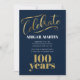 Elégante invitation à la fête du 100e anniversaire bleu marine, or et blanc.