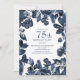 Feuilles bleu marine/indigo et floral sur l'invitation de fête blanche 75ème anniversaire. Contactez-nous pour obtenir de l'aide sur la personnalisation ou la mise en correspondance de produits.