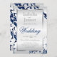 Invitation Marine Marbre Bleu, Argent & Satin Blan