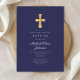 Invitation Marine Moderne Bleu Croix Religieuse Boy Baptême
