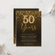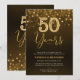 Invitation simple pour le 50e anniversaire de mariage avec un titre décoratif '50 ans' en doré imitation et quelques points dans la partie supérieure de l'invitation sur fond marron.