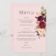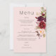 Célébrez votre mariage ou fêtez votre réception avec style et beauté avec ce menu floral marsala rose et bordeaux. Customisez avec vos options d'entrée et monogramme. Disponible avec un arrière - plan blanc, noir, bordeaux, rose et bordeaux foncé.