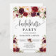 Invitation Marsala rustique bachelorette à or floral bordeaux