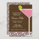 Commencez votre fête d'anniversaire en envoyant ces invitations chic de fête avec un martini rose sur un arrière - plan zèbre. Art © ILLUSTRATIONS JW