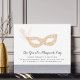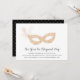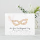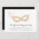 Les élégantes invitations à des boules de mascarade pour le réveillon du Nouvel An ou toute autre occasion de fête comportent un masque orné de rose et d'or, orné d'une plume. Personnalisez avec les détails de votre fête en dessous en script de calligraphie noir et en bloc de lettres.