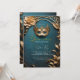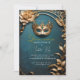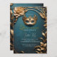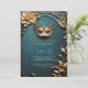 Faites de votre Quinceañera un véritable enchantement avec cette élégante invitation à la mascarade. Le design présente une luxueuse palette bleue et or, qui rappelle une magique boule de mascarade. Le feuillage d'or imitation 3D ajoute une touche de glamour à votre célébration.