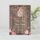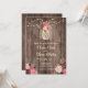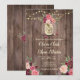 Une belle faire-part de mariage rustique aux roses d'aquarelle rose, un pot de mason et des lampes à cordes sur un arrière - plan de bois vintage chaleureux. La carte revient à un petit bouquet floral au centre. Vous pouvez customiser la police comme vous voulez ou ajouter votre propre message spécial. Cette invitation fait partie d'une belle suite de mariages assortie qui peut être entièrement personnalisée.