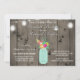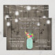 Bois rustique branché et lumières de bocaux de mason accueillent des invitations à des styles de mariage campagnard rustiques - planches de granges Vintages arrière - plans à l'allure surannée et taupe. De l'autre côté du sommet sont suspendus, des bocaux de maçonnerie rustiques et des lampes à cordes romantiques. Personnalisé avec les noms des couples dans la coordination, le gris le plus pâle avec l'effet d'ombre. Un pot de mason vert à la menthe, au bouquet fleur sauvage, fait la distinction entre les détails mariages. Le arrière - plan en bois rustique est assorti aux lumières de la campagne.Important : Toutes les images sont imprimées. Utilisez le bouton Customiser pour modifier n'importe quoi - styles de police, tailles, couleurs ou placement. Des couples rustiques parfaits de invitations de fiançailles pour des thèmes de mariage anciens, des mariages de mason jar, des styles de grange mariage, des mariages rustiques, des mariages campagnards, des mariages d'été, des mariages extérieurs décontractés ou des mariage de l'ouest du pays. Nous disposons de produits de mariage de bois rustiques coordonnés et de décoration dans notre boutique Zazzle.com/angela65. Des invitations de douches rustiques et simples à fiançailles, prêts à être personnalisés avec vos propres détails.