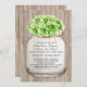 Faire-part de mariage rustique et tendance, avec jarre de maçon avec de belles hydrangées vertes en pleine floraison sur arrière - plan en bois de grange. Entièrement personnalisable, cliquez sur Customiser le bouton pour modifier la taille, la couleur et le style de la police. Vous pouvez également supprimer, réorganiser ou ajouter du texte en fonction de vos besoins.