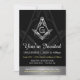 Ce modèle d'invitation maçonnique sur mesure pour l'Installation annuelle des Officiers donnera une touche élégante. Le design présente l'emblème carré et boussole de la maçonnerie sur un modèle de carte d'invitation noir et argent et fonctionnera non seulement bien pour cette cérémonie de franc-maçon, mais aussi pour d'autres événements spéciaux lodge tels que des dîners, etc. Catégorie : invitations personnalisées pour les fêtes et modèles pour les freemasons. Thème de couleur : argent métallique et noir.