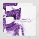 Une élégante invitation à la fête avec un thème de mascarade comporte un masque et des perles violettes sur un arrière - plan en plumes blanches, avec le mot "masquerade" dans une police de script sophistiquée. Affiché comme une invitation Sweet 16, mais peut être customisé pour une Quinceañera, Mardi Gras ou tout événement avec un thème de mascarade.