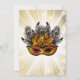 Masque orange et jaune et plumes sur un starburst or, arrière - plan étincelant. Idéal pour Mardi Gras, événement ou fête d'anniversaire.