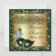 Invitation Masquerade Masque Gold & Green fête d'anniversaire