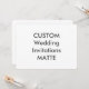 Pour obtenir la gamme complète et extensible de modèles de produits mariages personnalisables, visitez le site http://www.personalizedweddingessentials.com. Invitations personnalisées de mariage MATTE - 7,5 po x 5,5 po - COINS ARRONDIS. Le type de papier le plus populaire, la texture Matte coquille d'œuf est douce au toucher grâce à une finition lisse, un support de choix pour vos designs. Carte de 120 livres, 17 points d'épaisseur. FABRIQUÉ AUX ÉTATS-UNIS. Gros achat en vrac de plusieurs rabais achat sur les cartes d'invitation, jusqu'à 50% de réduction sur vos achats pour plusieurs commandes d'articles. Invitations de mariage Zazzle - Créez, faites, concevez vos propres invitations de mariage personnalisés à partir de ce modèle de conception de carte d'invitation Zazzle entièrement personnalisable et personnalisé. Impression de haute qualité, couleur pleine blancheur, sur les deux côtés avec des options d'impression Standard ou HAUTE DÉFINITION. Options de taille : 5 po x 7 po, 4,25 po x 5,5 po, 3,5 po x 5 po, 4 po x 9,25 po, 5,25 po x 5,25 po, 4,5 po x 6,25 po, 5,5 po x 7,5 po, 6,5 po x 8,75 po. Options d'orientation : Vertical (portrait) ou horizontal (paysage). Options de finition : Semi-brillant, Matte, Ultra-épais, Laid, Lin, Colonne, Sens Blanc, Felt Ecru, Kraft, Pearl Shimmer, Champagne Shimmer & Metallic Silver. Options de forme et de style de la carte : Coins standard ou arrondis (toutes tailles confondues); Emballage, Pince à bascule, Billet ou Balise (5 po x 7 po seulement); Circulaire (5,25 po seulement). Enveloppes blanches standard incluses, avec options de mise à niveau. Parfait pour les invitations de mariage, bachelorette, douche nuptiale, dîner de répétition, enregistrer la date, etc, et pour toute invitation à la fête RSVP, comme anniversaire, anniversaire, sweet sixteen et Quincenera; ou pour les invitations d'événements et d'expositions d'entreprise - pour photo, image, texte, mariée et mariée, ou votre propre création de design personnalisé unique.