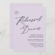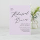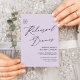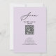 Mauve Élégant Script Minimaliste QR Code Reprsal Dîner Carte d'invitation. Célébrez votre journée spéciale avec cette belle et élégante carte de faire-part de mariage pour embellir votre occasion spéciale. Tous les textes sont pré-arrangés pour que vous personnalisiez facilement et rapidement avec vos propres détails. Si vous avez besoin d'une personnalisation ou d'un assortiment d'articles, veuillez nous le faire savoir - nous aimerions vous aider.