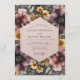 Embrace a dramatic and romantic aesthetic for your special day. This artistic design features a lush arrangement of painterly mauve and plum anemones, accented by vibrant marigold wildflowers. Delicate greenery weaves through the blossoms against a deep, moody charcoal backdrop, creating a sophisticated and unforgettable atmosphere.