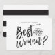 Elle comporte les mots "Meilleure Femme" dans un style d'écriture élégant. Le verso contient des rayures.
