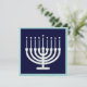 Une menorah fantaisiste avec des cercles de bleu et de vert constitue une invitation chaleureuse à votre célébration de Hanukkah.