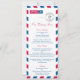 Design Airmail rayé rouge et bleu pour votre menu de mariage de destination. Si vous avez besoin de modifications de conception ou de mise en page pour mieux fonctionner pour vous, envoyez un courriel à paula@labellarue.com AVANT DE CUSTOMISER OU DE PASSER VOTRE COMMANDE afin qu'un nouveau modèle puisse être créé pour vous.