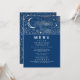 Cartes de menu bleu marine et or mariage étoilé et croissant de lune