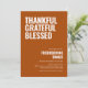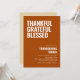 Célébrez la saison avec cette Invitation de Dîner d'Action d'Ami Grateful. Conçu avec une typographie moderne audacieuse dans des tons chauds en terre cuite, cette invitation minimaliste capture parfaitement l'esprit de gratitude et d'unité. Idéal pour les fêtes d'Amical, de Thanksgiving ou de potlucks d'automne, ce modèle éditable est facile à personnaliser pour votre fête festive.