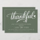 Célébrez Thanksgiving avec vos proches avec cette invitation élégante et élégante. L'invitation comporte une police de calligraphie en écriture blanche disant "reconnaissante" avec un coeur placé sur un arrière - plan vert de forêt. La meilleure façon d'invitation vos invités à une soirée mémorable de nourriture, de plaisir et de convivialité.