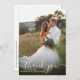 Cet élégant carte de remerciements photo mariage présente un script moderne qui dit "Merci" au-dessus d'une photo du couple marié, à l'envers, une typographie moderne pour le message de remerciement et l'adresse de retour du marié dans le coin supérieur gauche. Pour ajouter vos propres images et détails, cliquez simplement sur le bouton "personnaliser ce modèle".